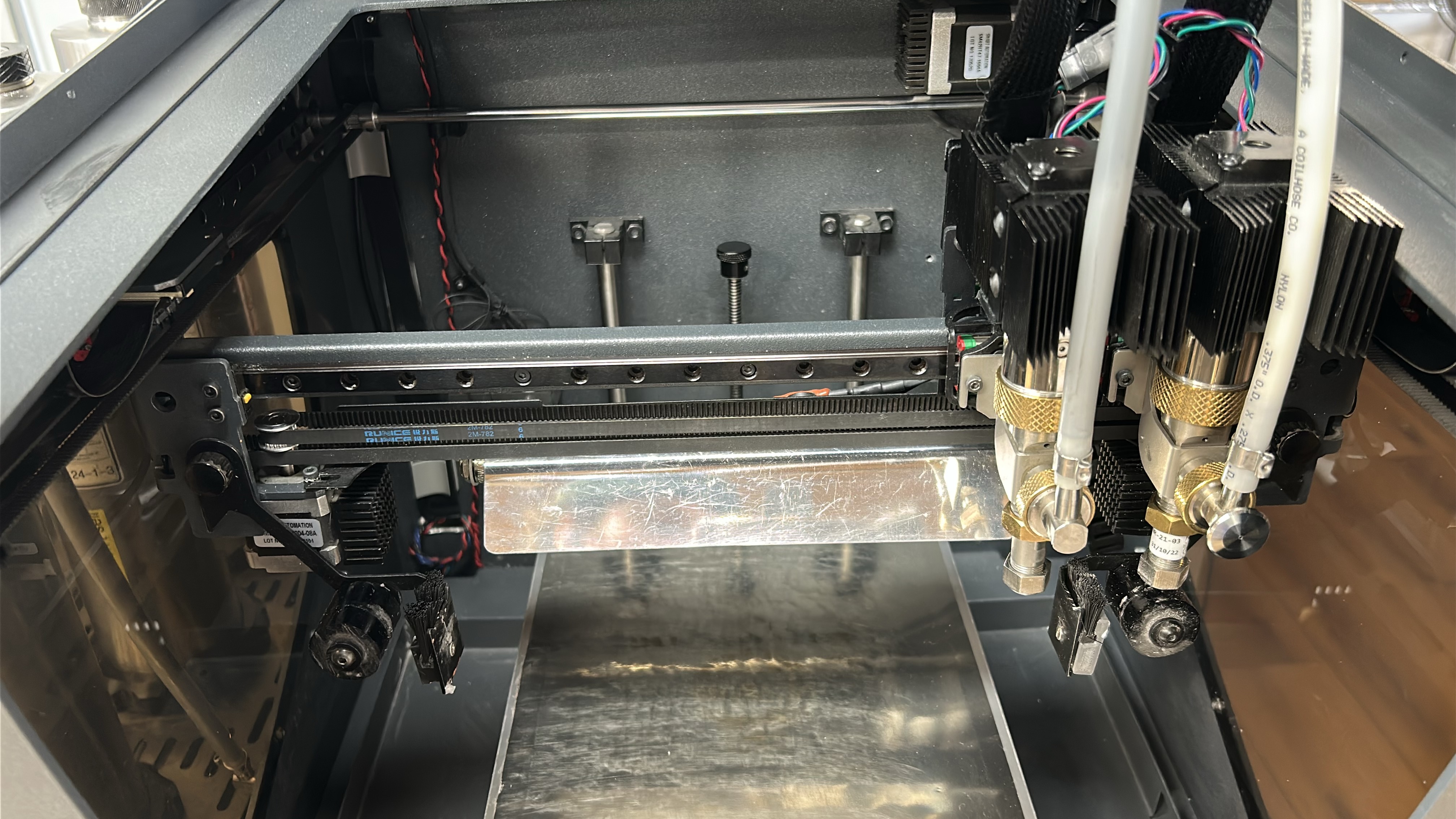 8. Move both printheads to the other side of the printing gantry and repeat steps 5 - 7 on the other Y-axis linear guide.