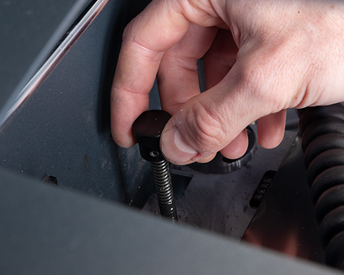 5. After making adjustments to the leveling knob, use the knurled knob on the Z-axis lead screw to adjust the height of the bed to keep the resistance low at the middle of the bed.