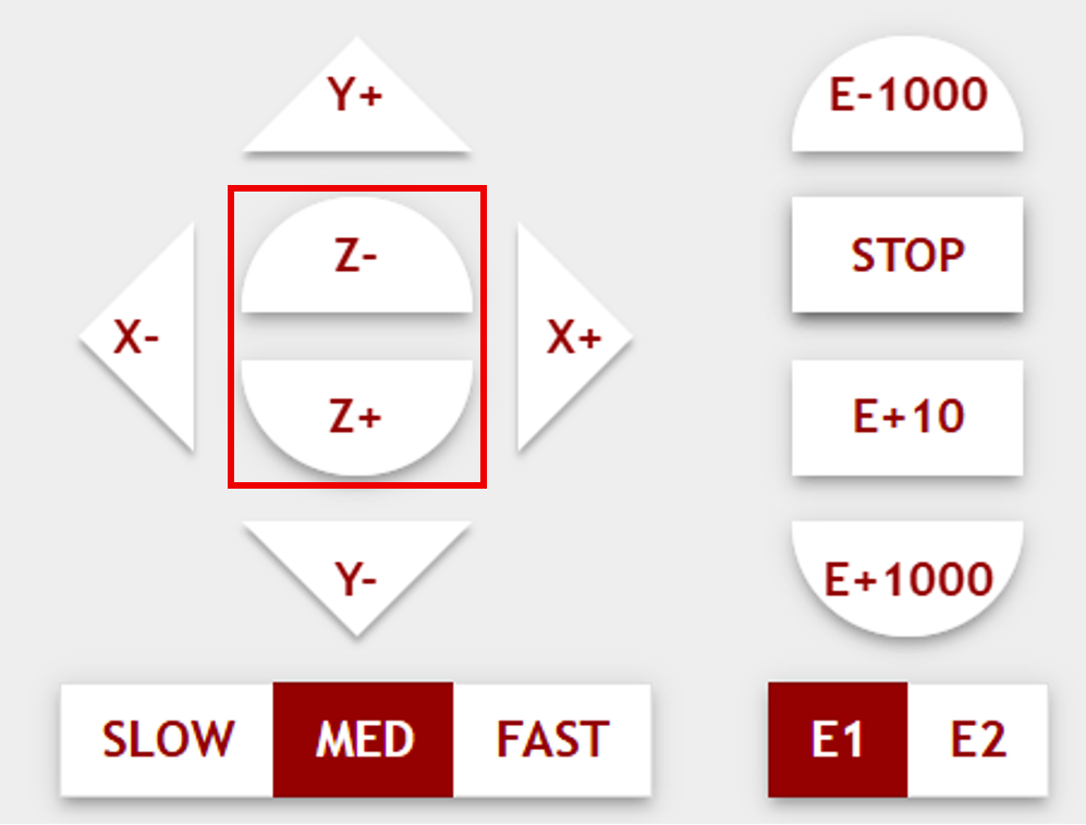 9. In the host software, home the machine, then lower the printing platform (Z+) to its lowest position. After that power off the machine by flipping the switch on the front of the lower printer cabinet.