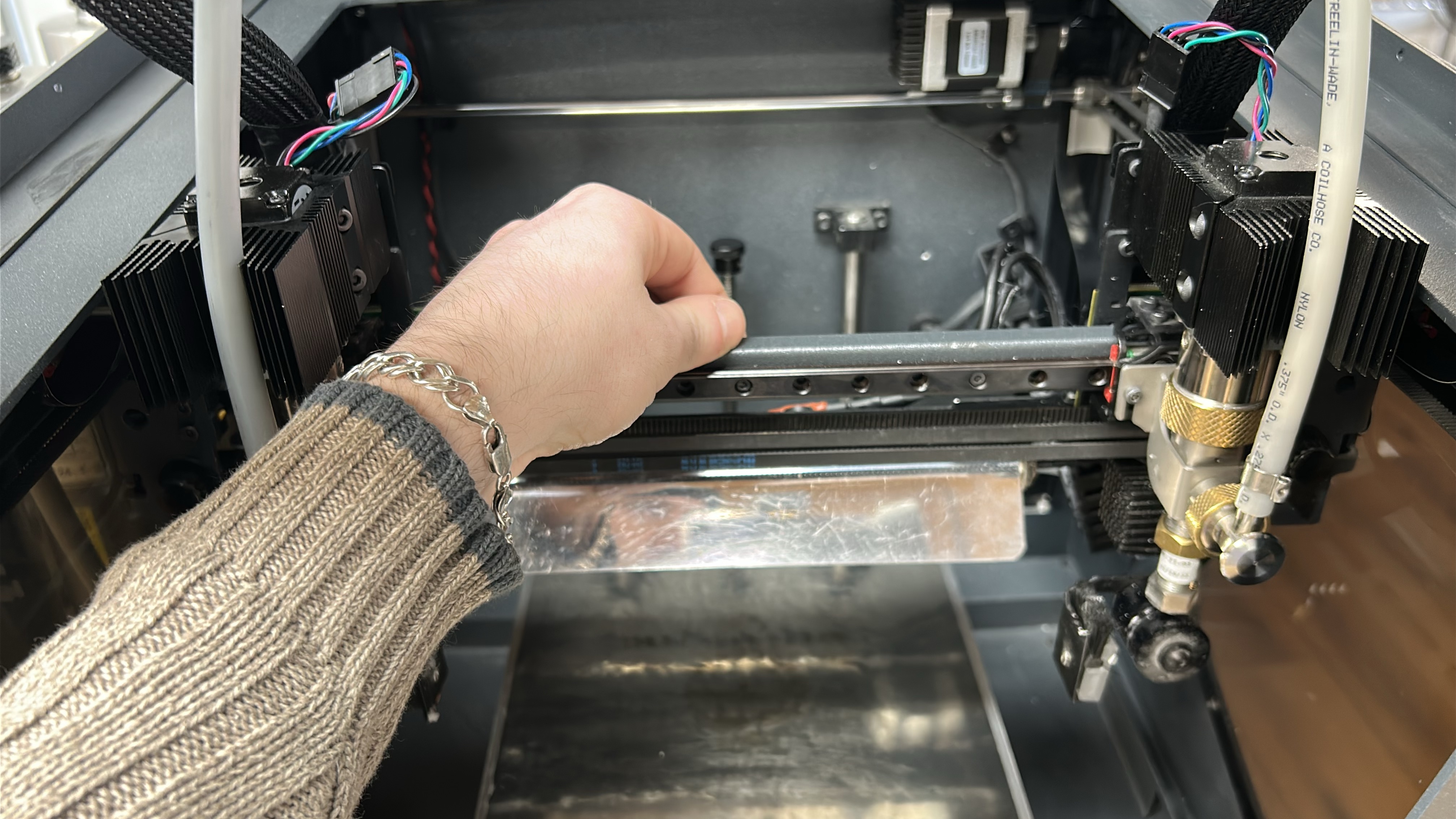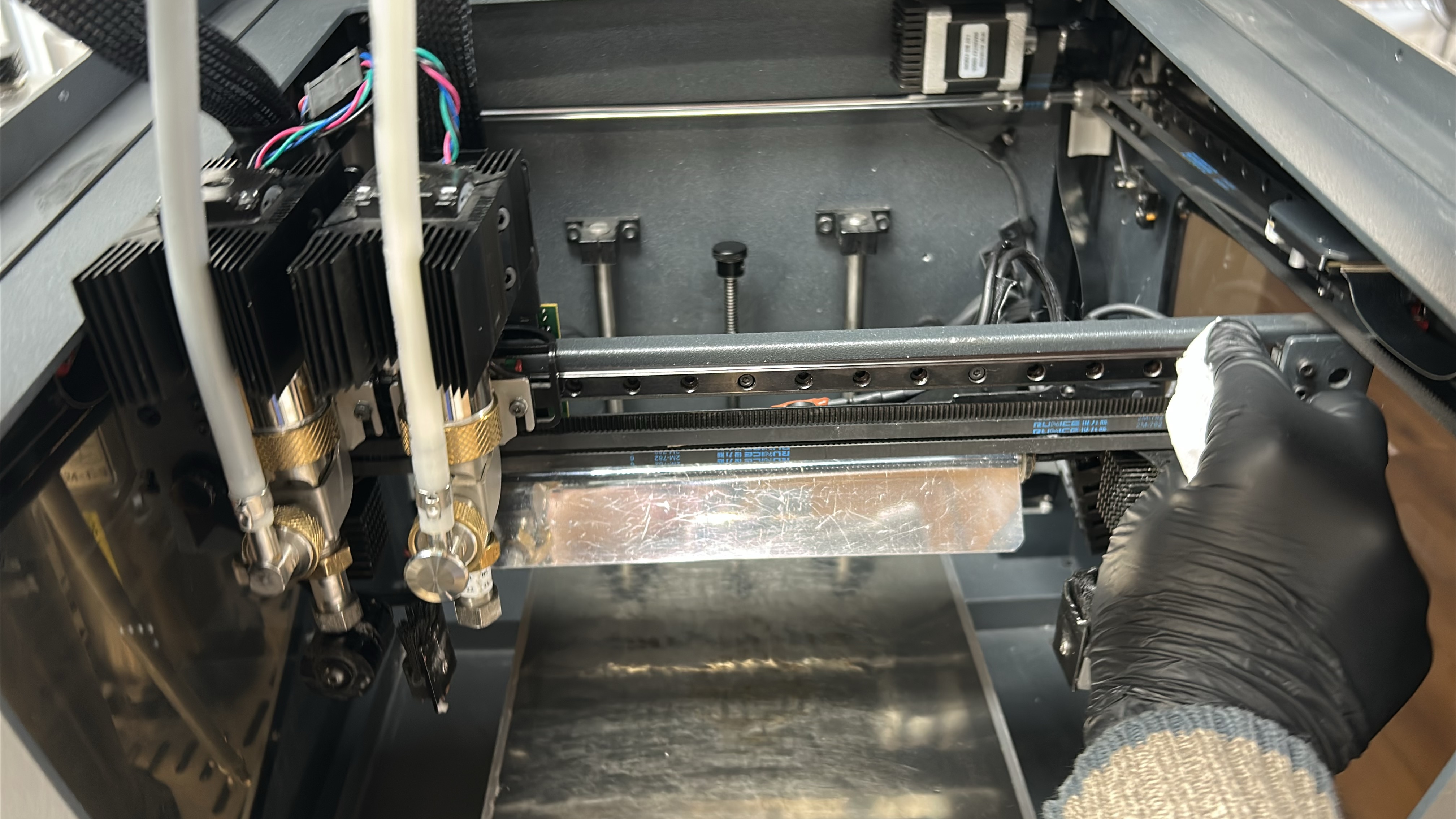 8. Move both printheads to the other side of the printing gantry and repeat steps 5 - 7 on the other Y-axis linear guide.