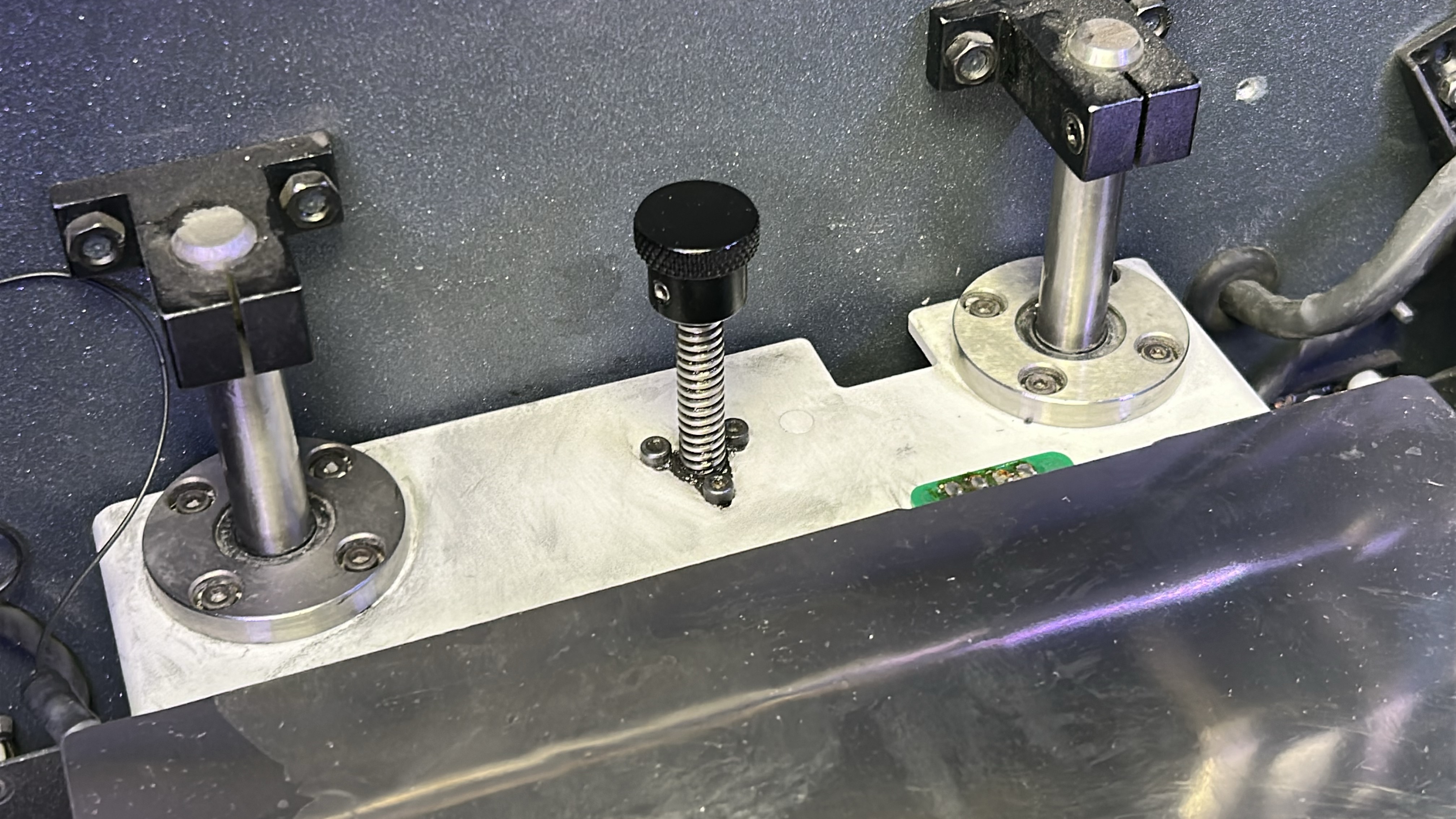 12. Apply solvent (isopropanol) to a paper towel or cloth and clean the Z-axis spindle trying to remove as much of the existing grease as possible. Then once any remaining solvent on the spindle has dried, apply a coat of grease along the spindle.