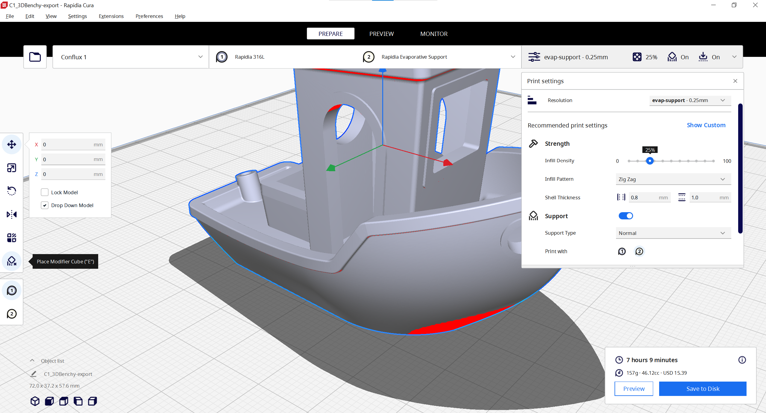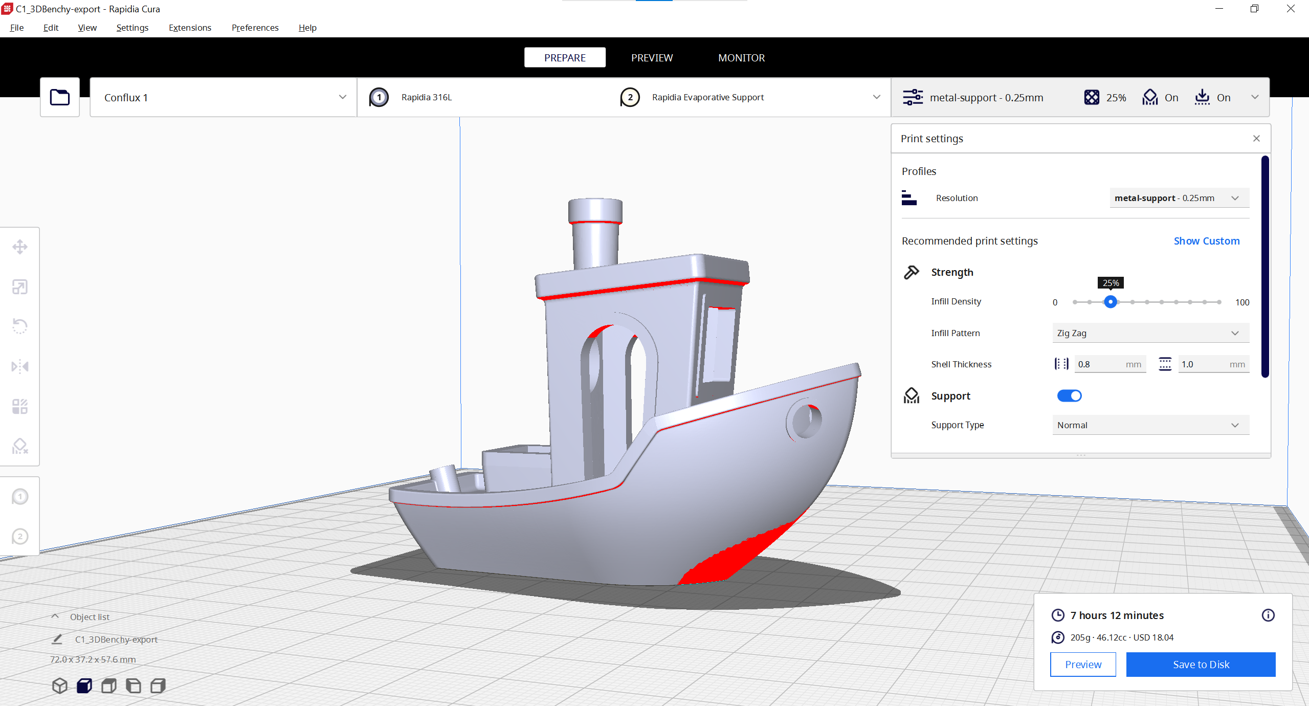 3mf: /demo parts/rapidiacura_3dbenchy.3mf.zip