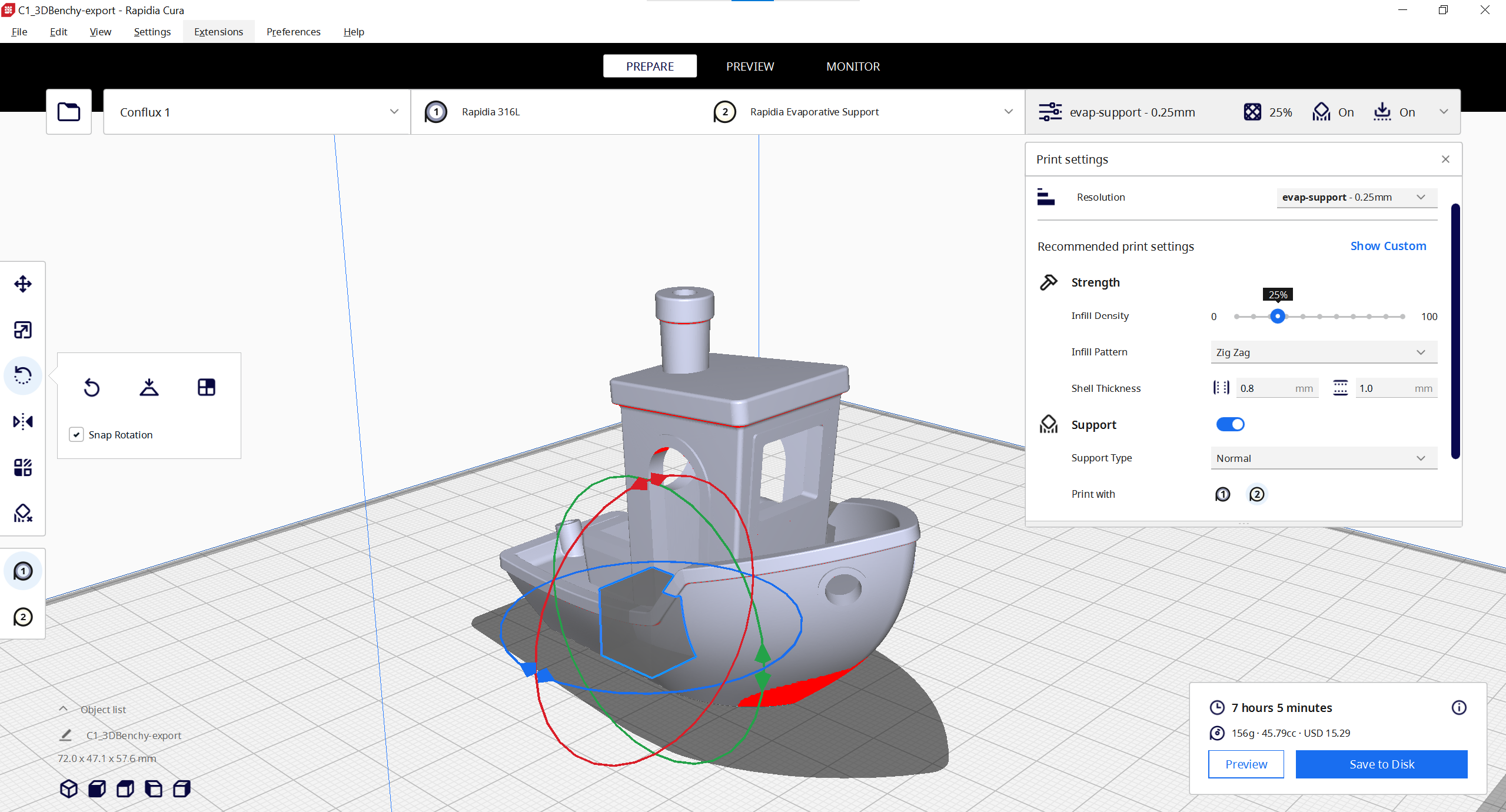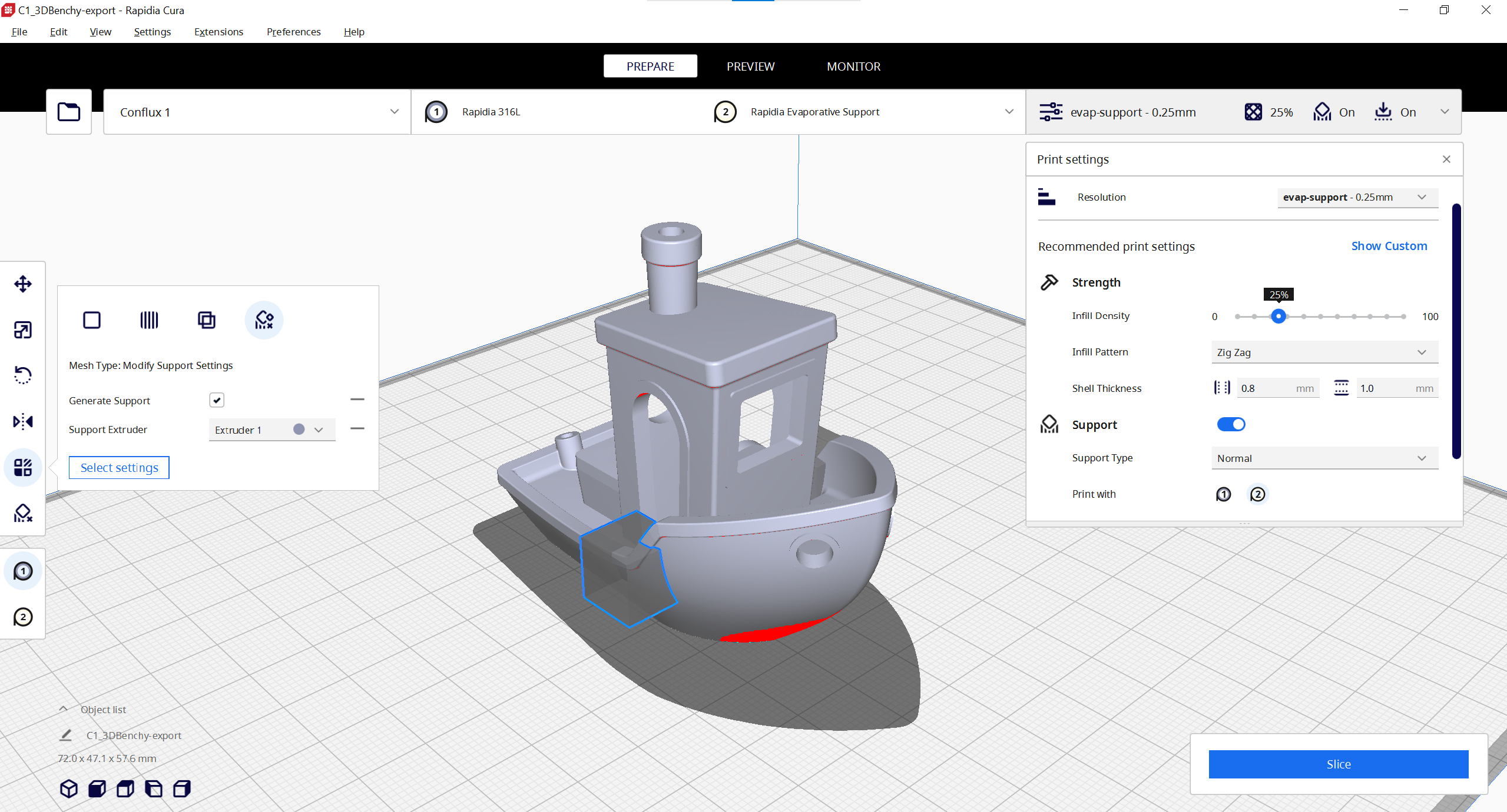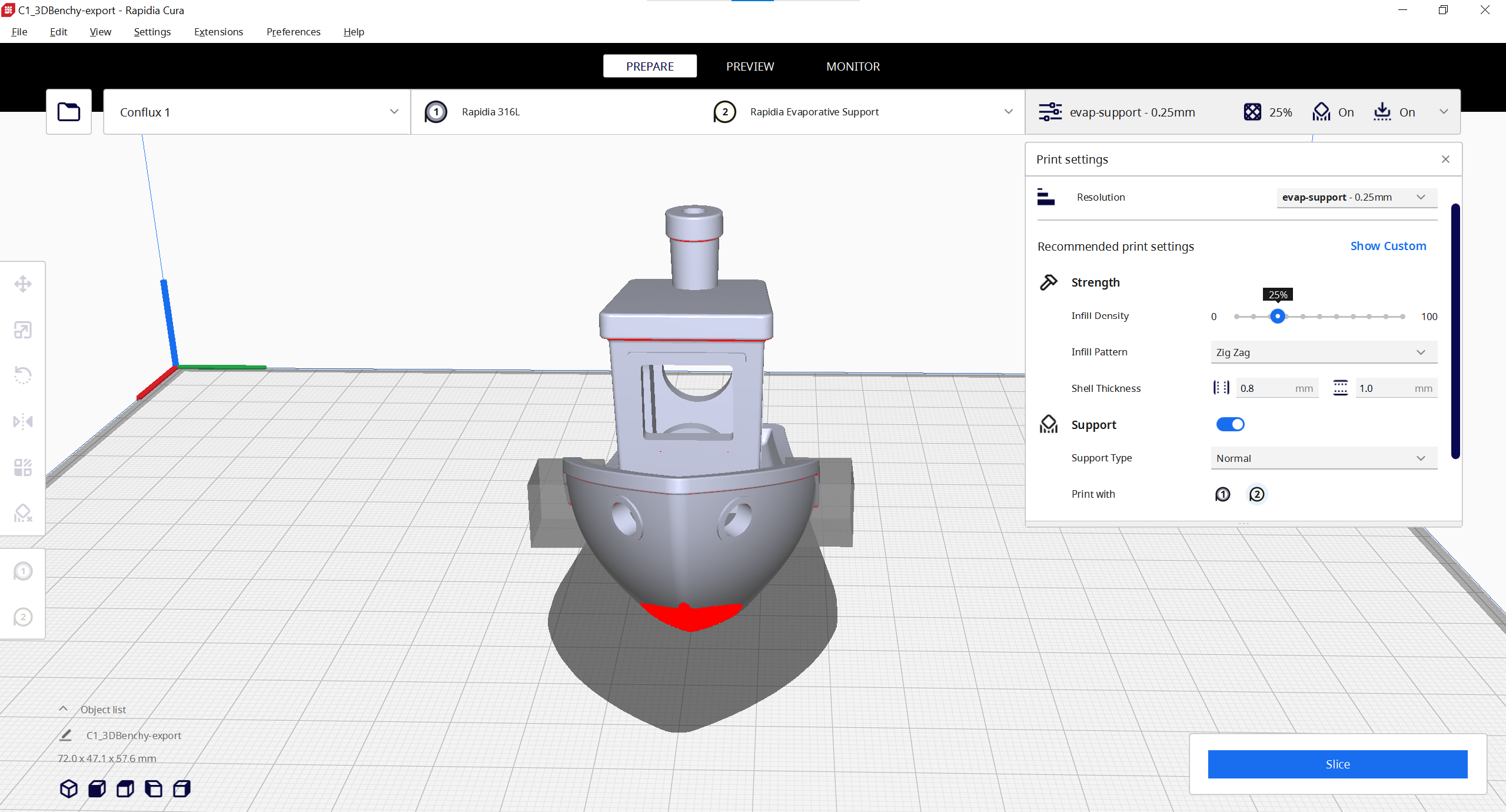 For this demonstration we are using Rapidia Cura 5.1.3.
