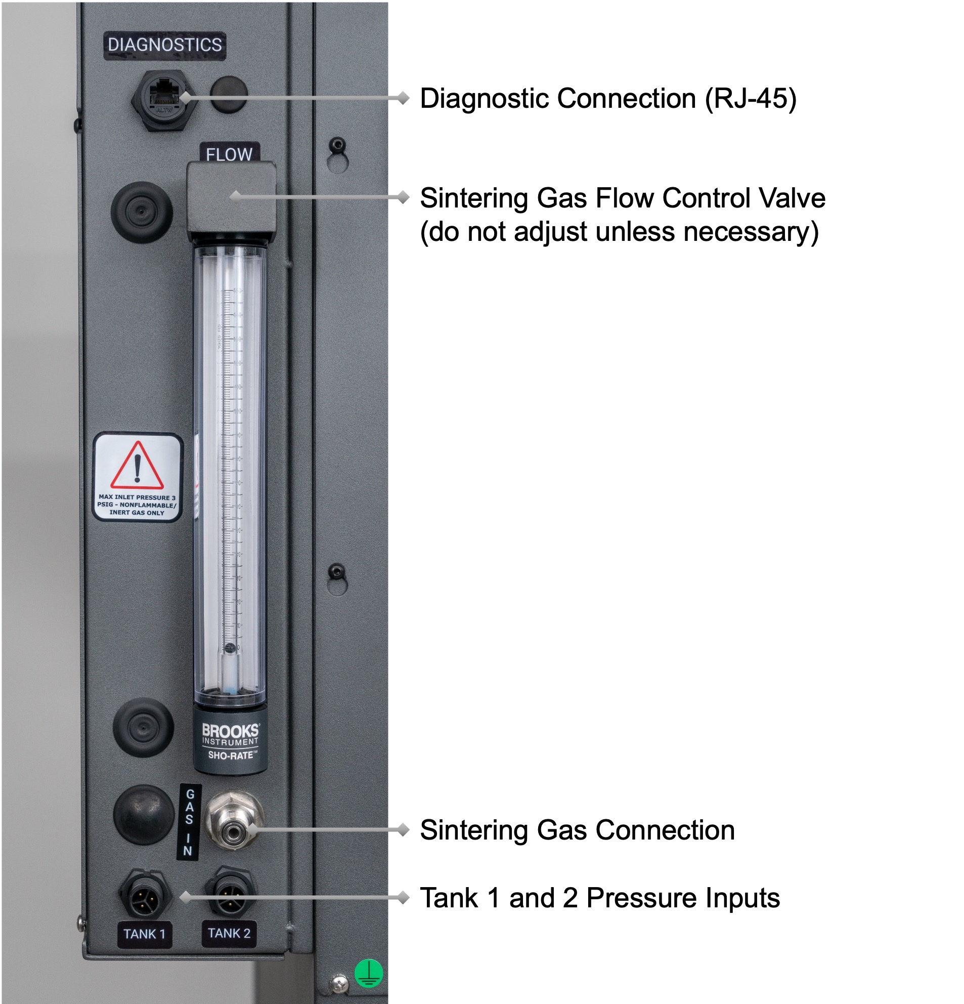 12. Turn the rotameter adjustment knob to achieve flow of 42 on the mm scale.